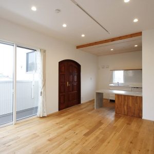 大岡山駅から伸びる商店街に面した住宅。以前はここで魚屋さんを営んでいたご家族からのご依頼を受け、商店街に開かれた1階と、2階に住宅を設計させて頂いた。間口が非常に狭く、奥行きの長い、商店街ならではの立地に対して、いかに開放的な室内環境を作れるかに挑んだ。3階建に伸ばすと、3階へのアクセスや出入り等に制限を受けるため、2階建の中で開放感を模索した。1階は非日常的な天井高さ2.8mの素直でまっすぐな空間、その上にはメリハリの効いたスッと高い吹き抜けのリビングと個室がある2階。2階はそれぞれに広いロフトを持ち、縦方向での広がりや視点の変化が住宅全体に多くのシーンを獲得している。背の高さが違う空間の箱が狭い間口の中で折り重なることで、上へ上へと導いてくれる、そんな立体を楽しむ住宅となっている。